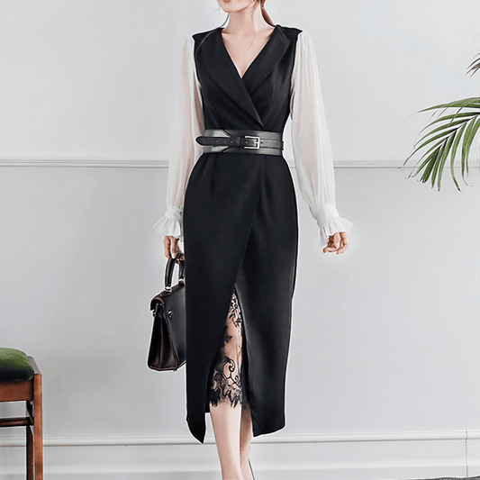 ラペルシャツ+チェック柄ヒップスカートセットアップ