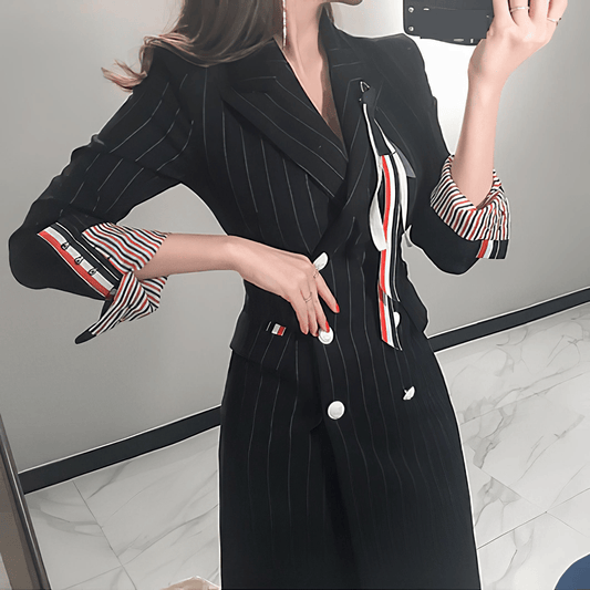 ショートジャケット+ストラップペンシルスカートセットアップ