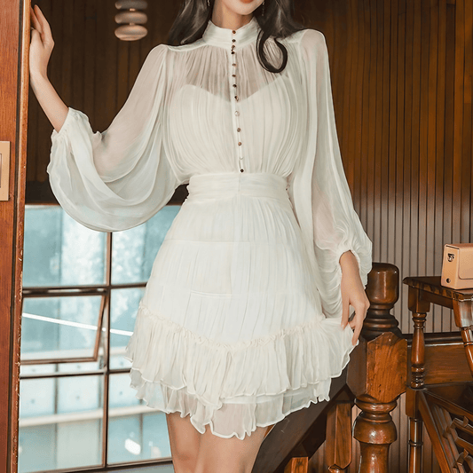 ノースリーブシフォントップ+アシンメトリータイトスカートセットアップ