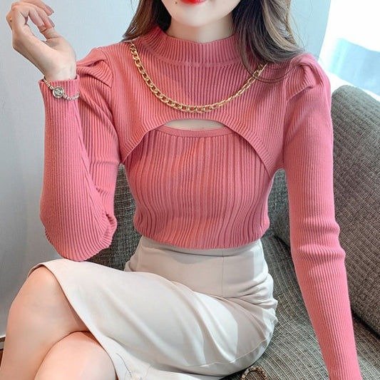 七分袖レーストップ+ハイウエストスリムスカートセットアップ