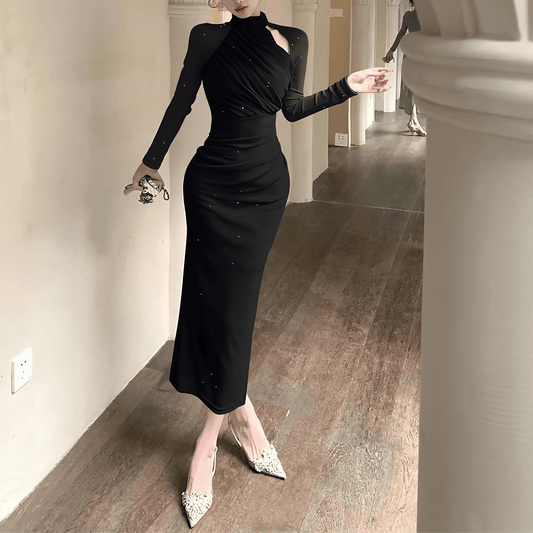 ホルターネックニットワンピース+ショートカーディガンセットアップ