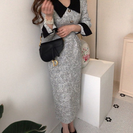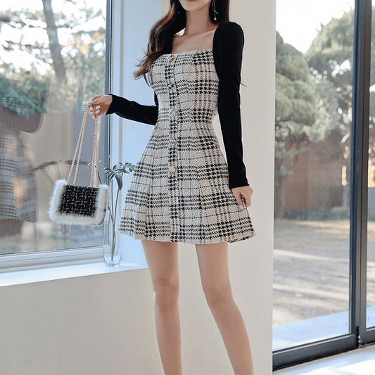 ケープジャケット+ノースリーブストライプワンピースセットアップ