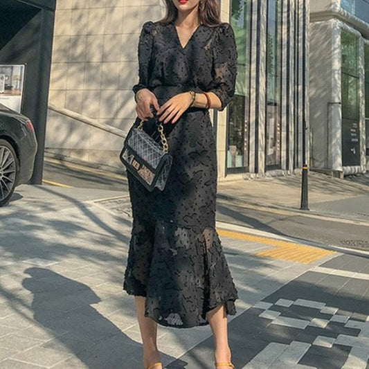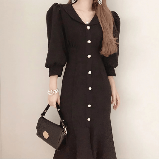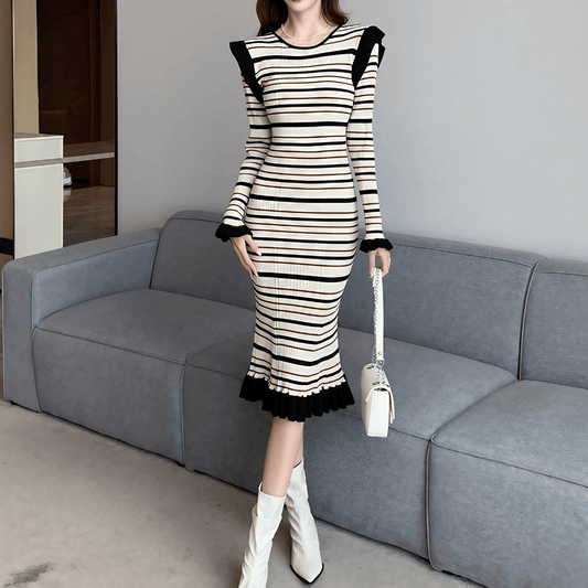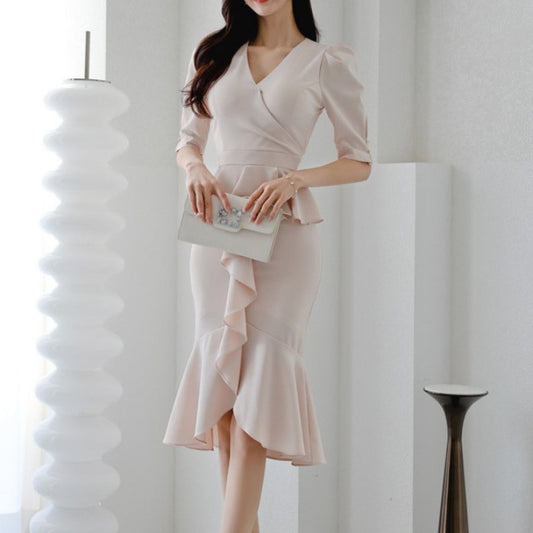 ベルト付ショルダーリボンフィッシュテールワンピース
