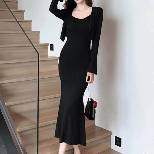 ブラックシフォンブラウス+ペンシルスカートセットアップ
