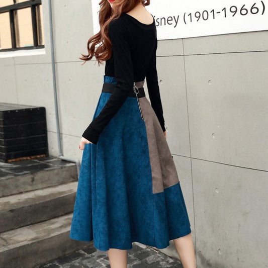 Vネックフリルニットトップ+ニットスカートセットアップ
