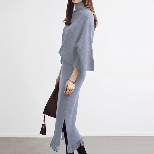 タートルネックトップ+チェック柄フィッシュテールスカートセットアップ