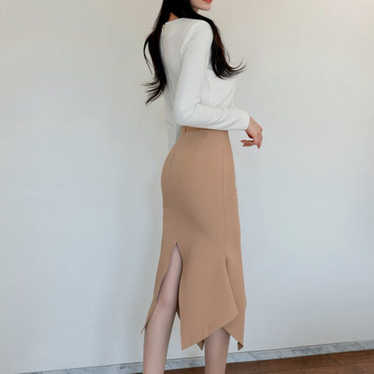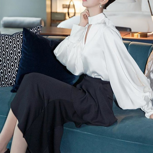 ハイカラーランタンスリーブシャツ+フィッシュテールスカート