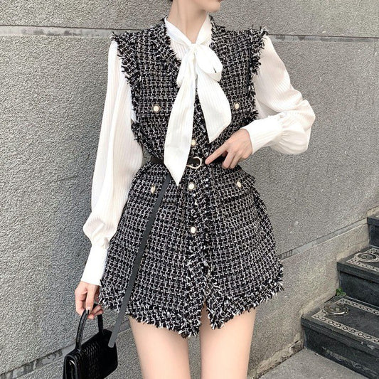 ロングツイードベスト+ボウタイシフォンシャツ