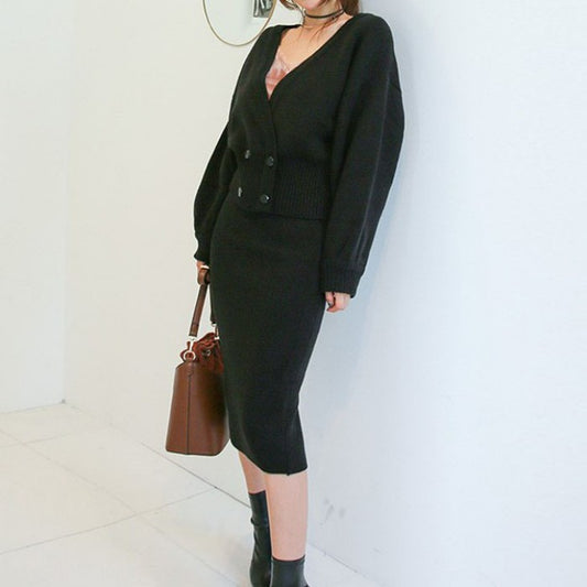 Vネックバットスリーブセーター+ニットスカートセットアップ
