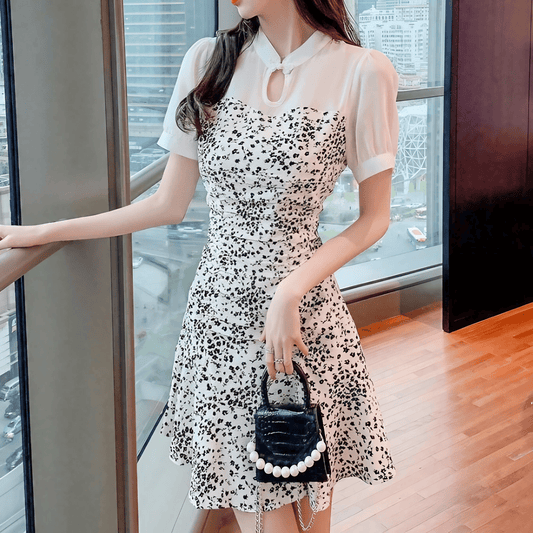 メッシュ切り替えフローラルワンピース
