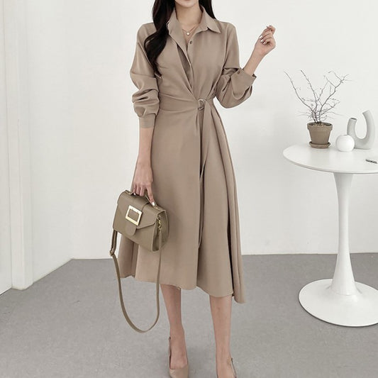 ハイウエストサイドプリーツワンピース+ロングシャツ