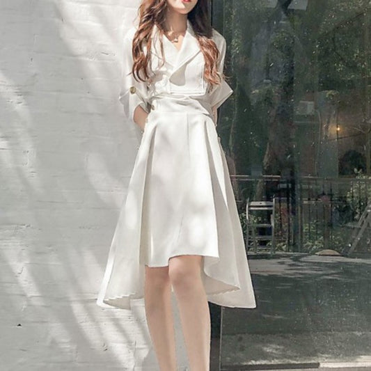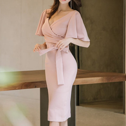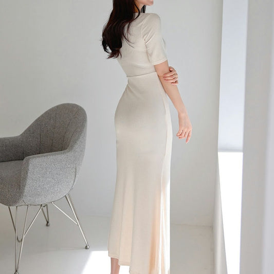 七分袖レーストップ+ハイウエストスリムスカートセットアップ