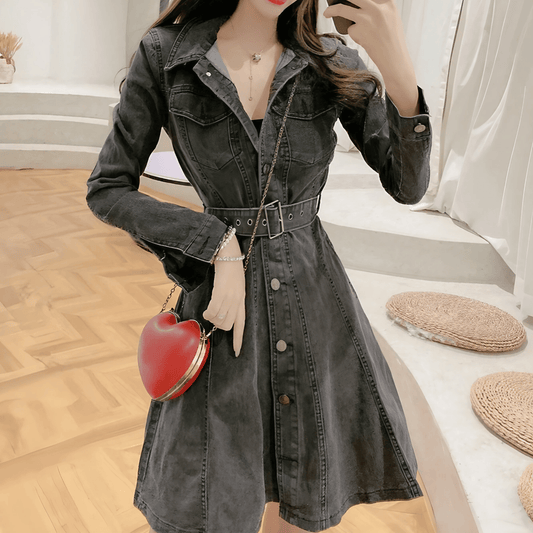 ハイウエストサイドプリーツワンピース+ロングシャツ
