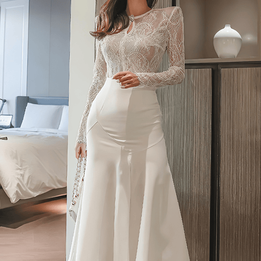ホルターネックオフショルシャツ+スリットスカートセットアップ