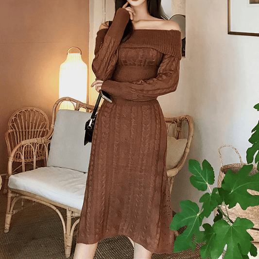 オフショルダーリブニットワンピース