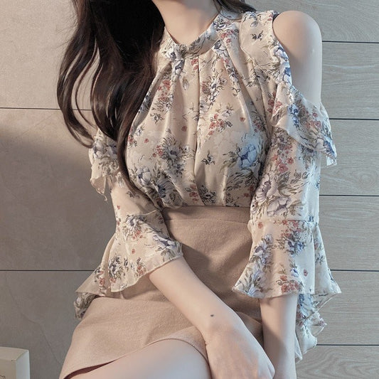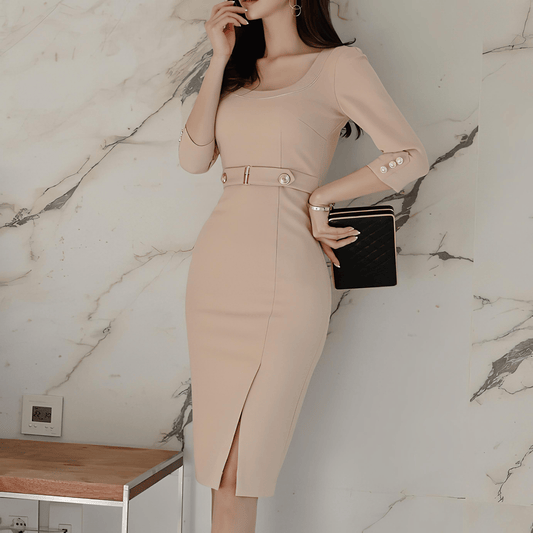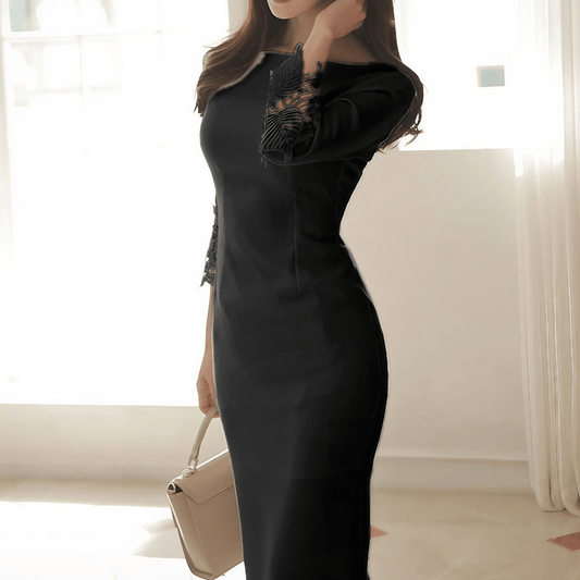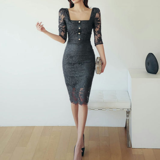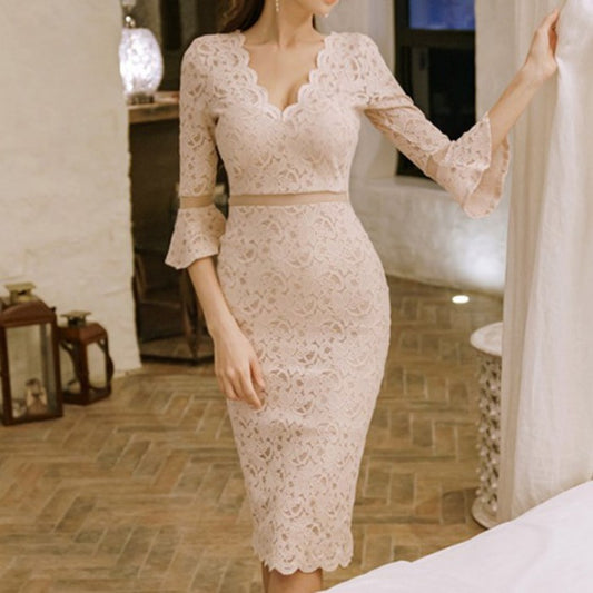 七分袖レーストップ+ハイウエストスリムスカートセットアップ