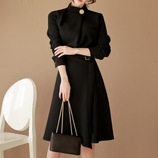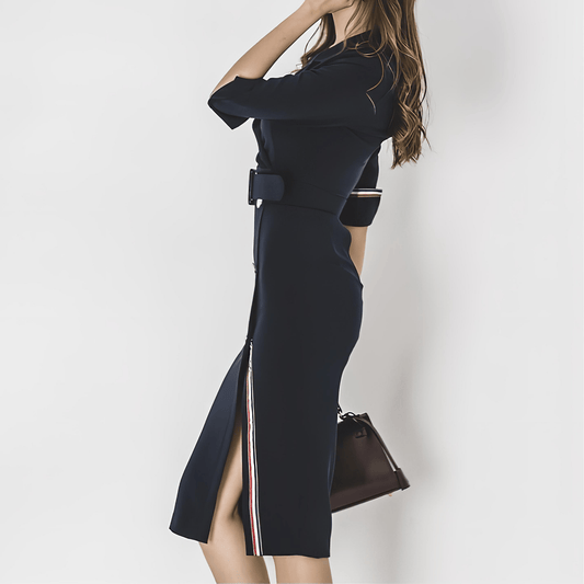 七分袖Vネックトランペットスリーブフェイクツーピース