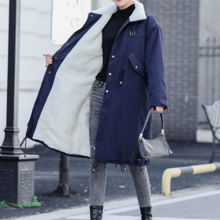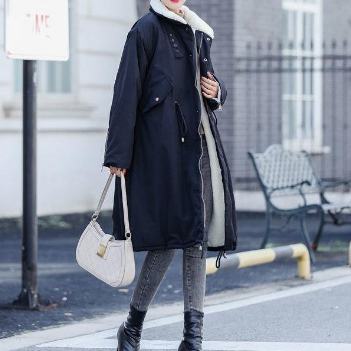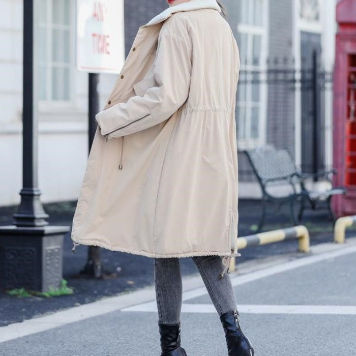 ミドル丈ハイカラーコットンコート