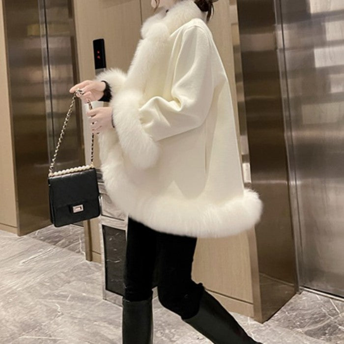 ロングファーショールマントコート