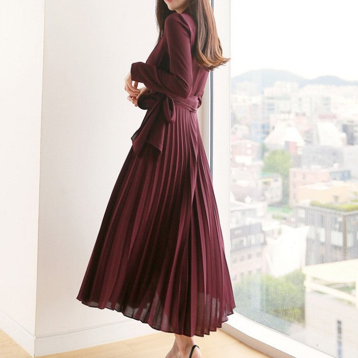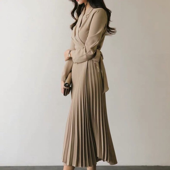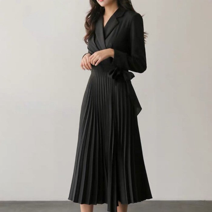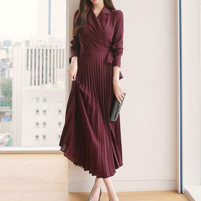 ラペルカラープリーツワンピース