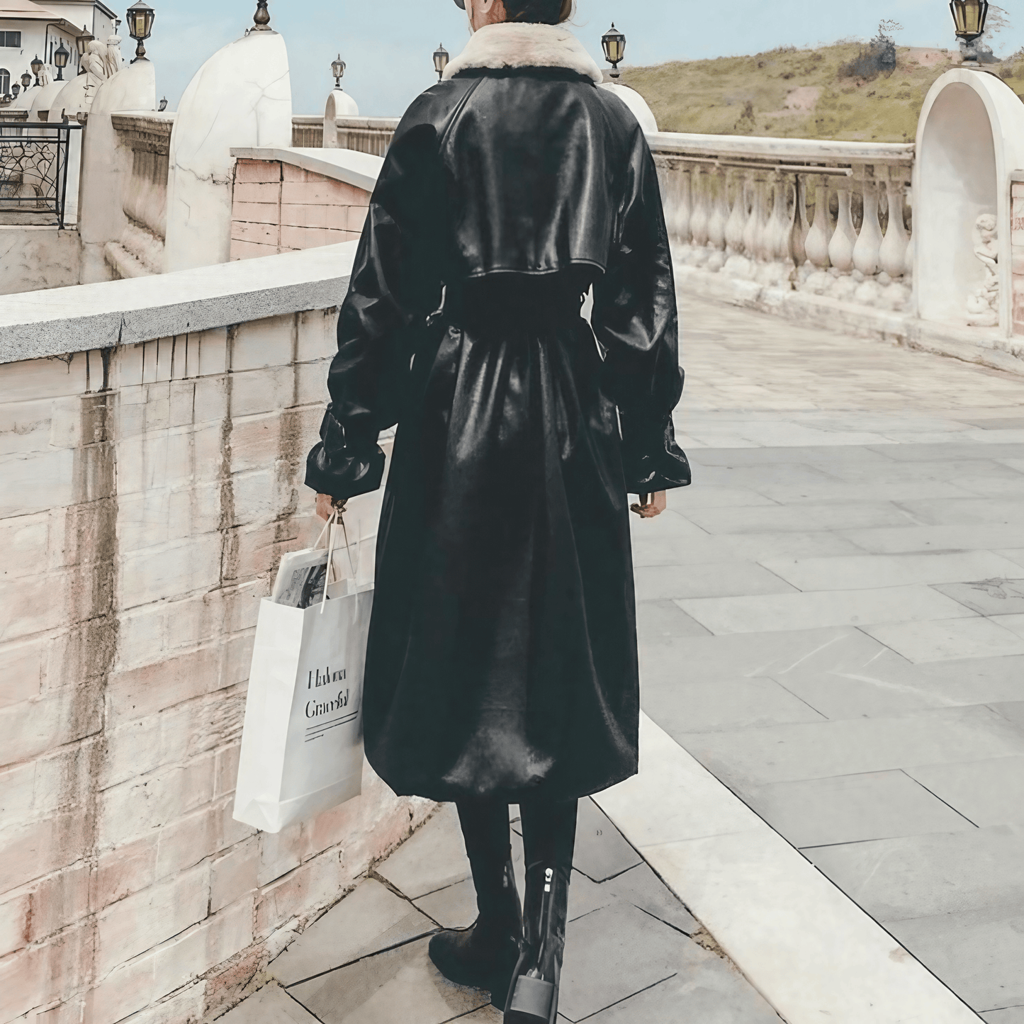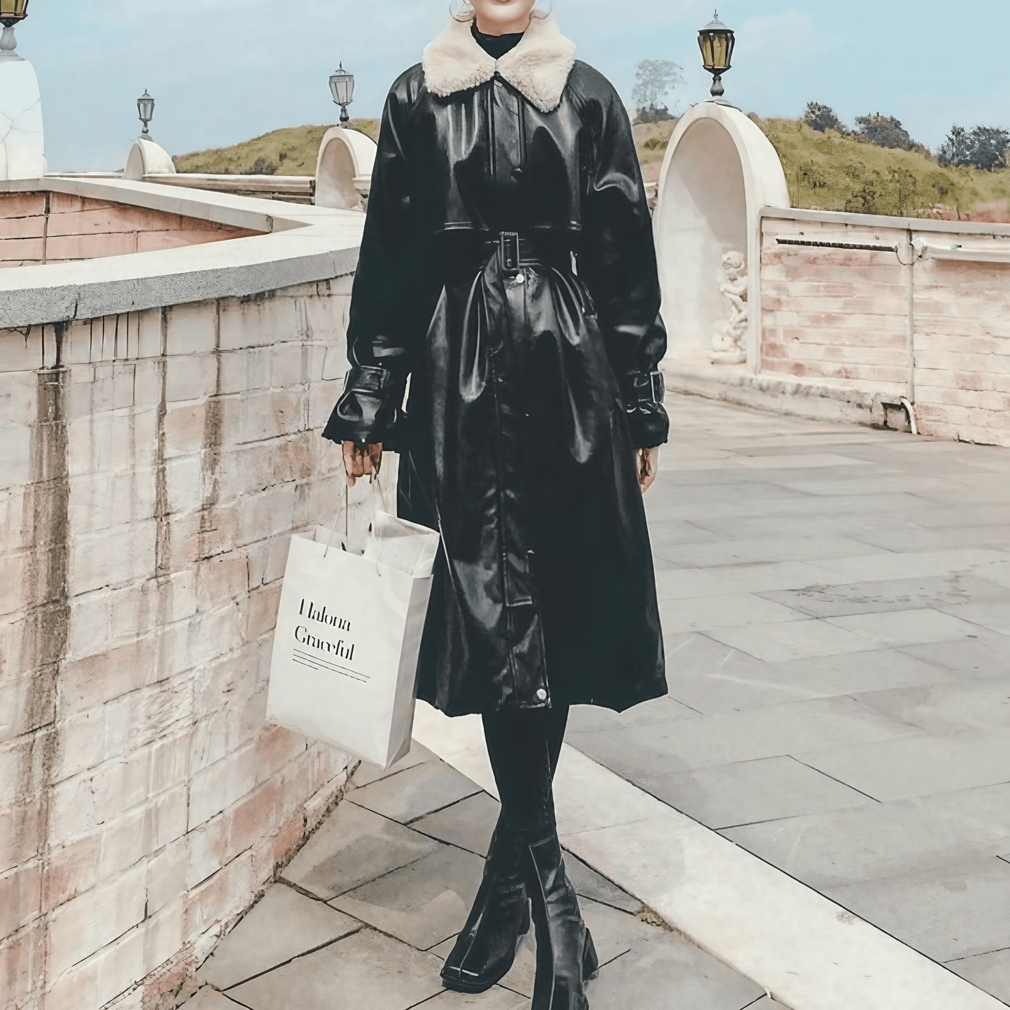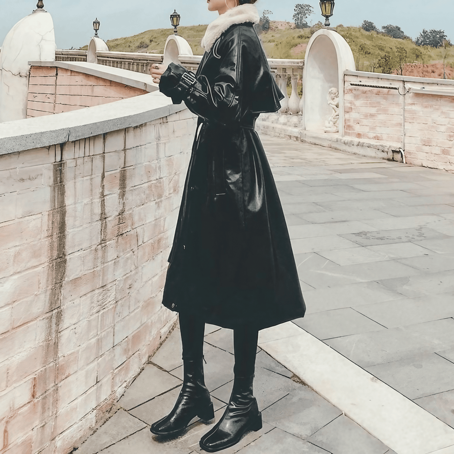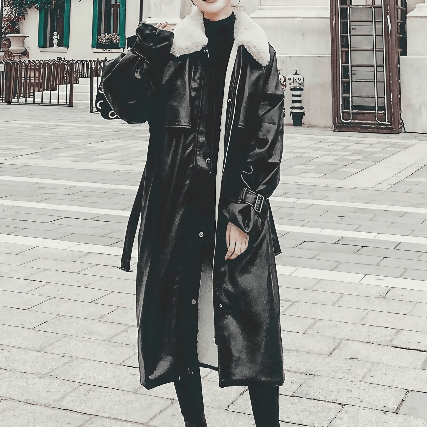 黒一色でどんなコーディネートにもマッチしやすく、ファーカラーがスタイリッシュなアクセントになっています。裏起毛の裏地により保温性が高くなってます。