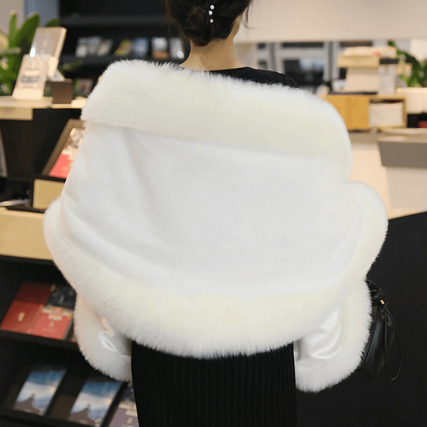 フェイクファーを使用し、お手頃価格で本物の毛皮のような柔らかさと暖かさを実現。結婚式などのフォーマルなイベントでの装いを一層豪華に演出します。