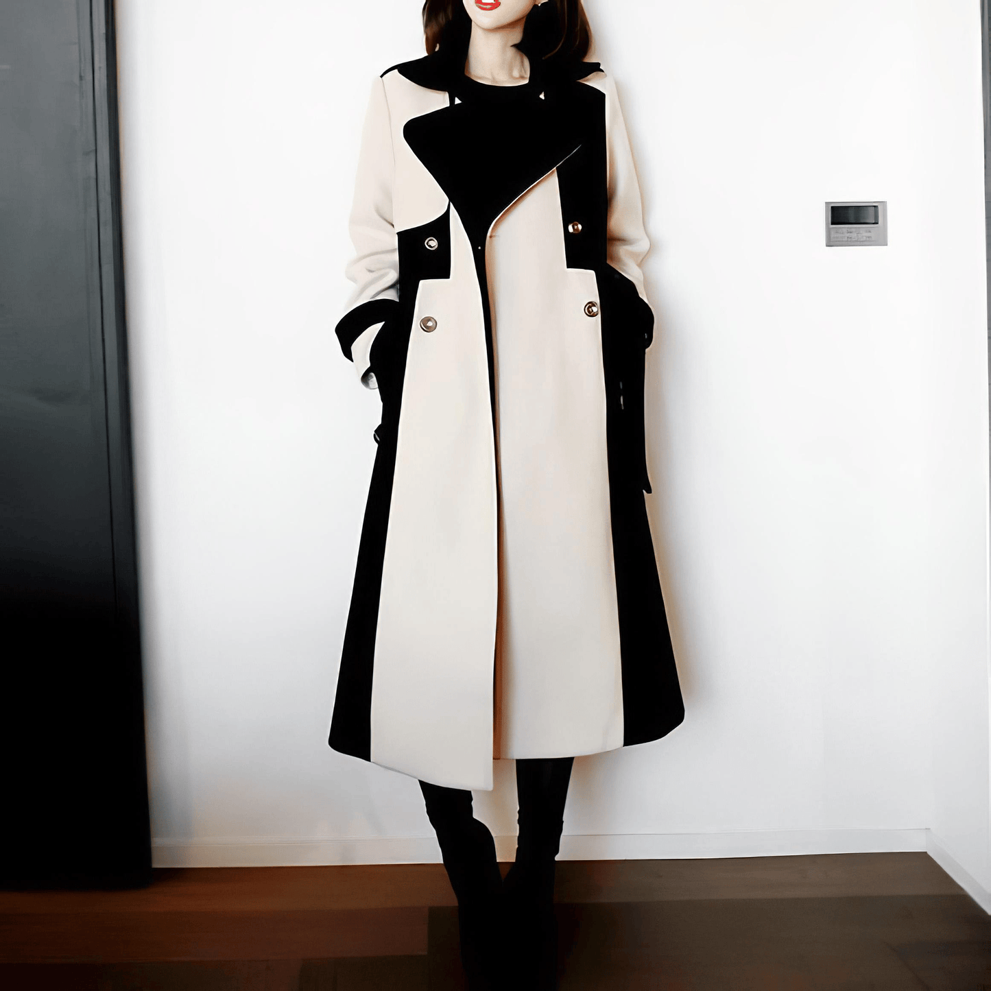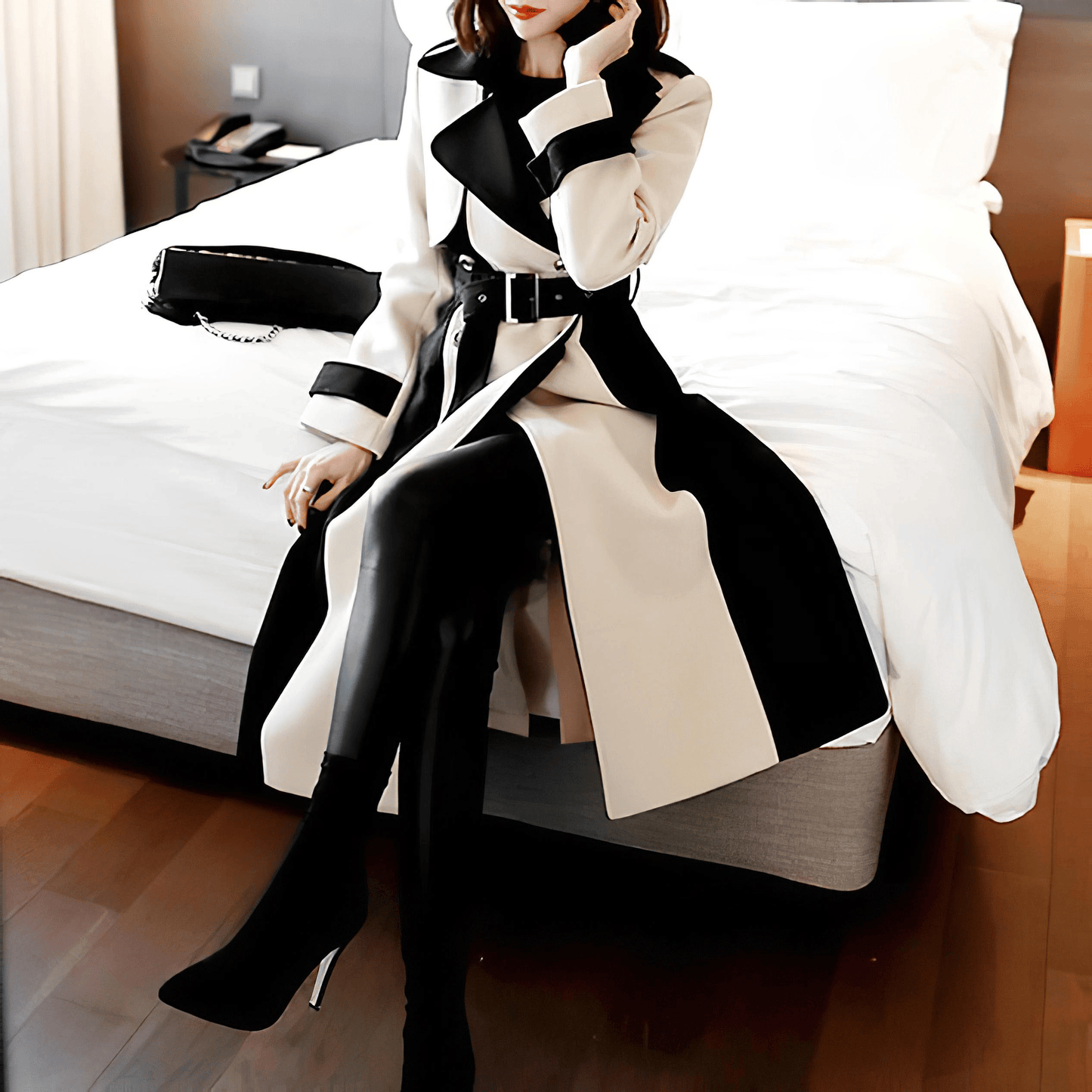 洗練されたコントラストで、気品とエレガンスを纏う ウール素材を使用し、暖かさと快適さを提供。