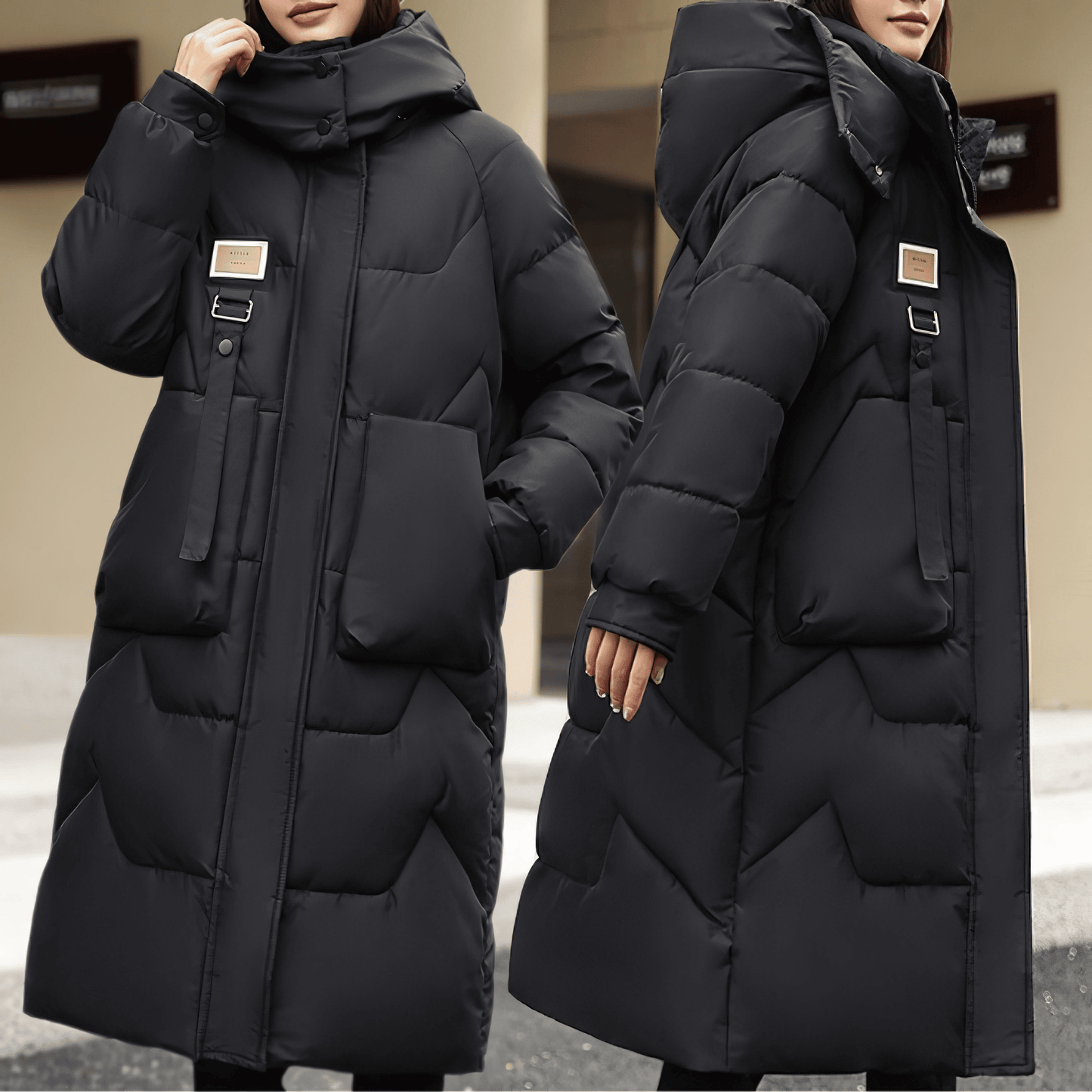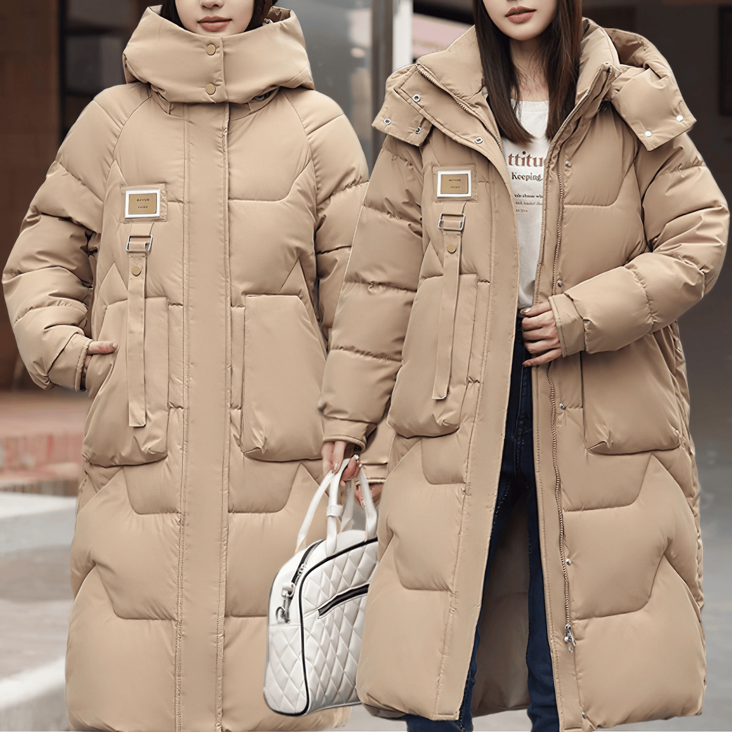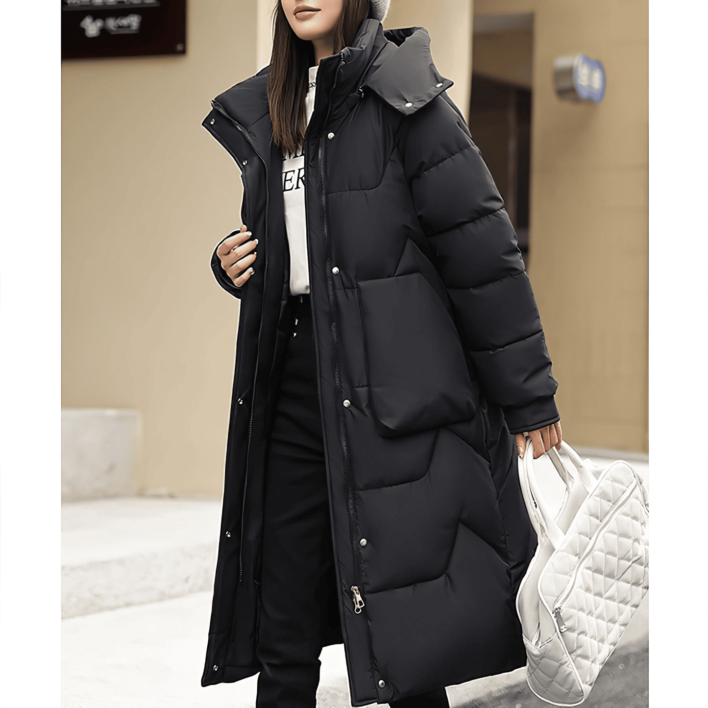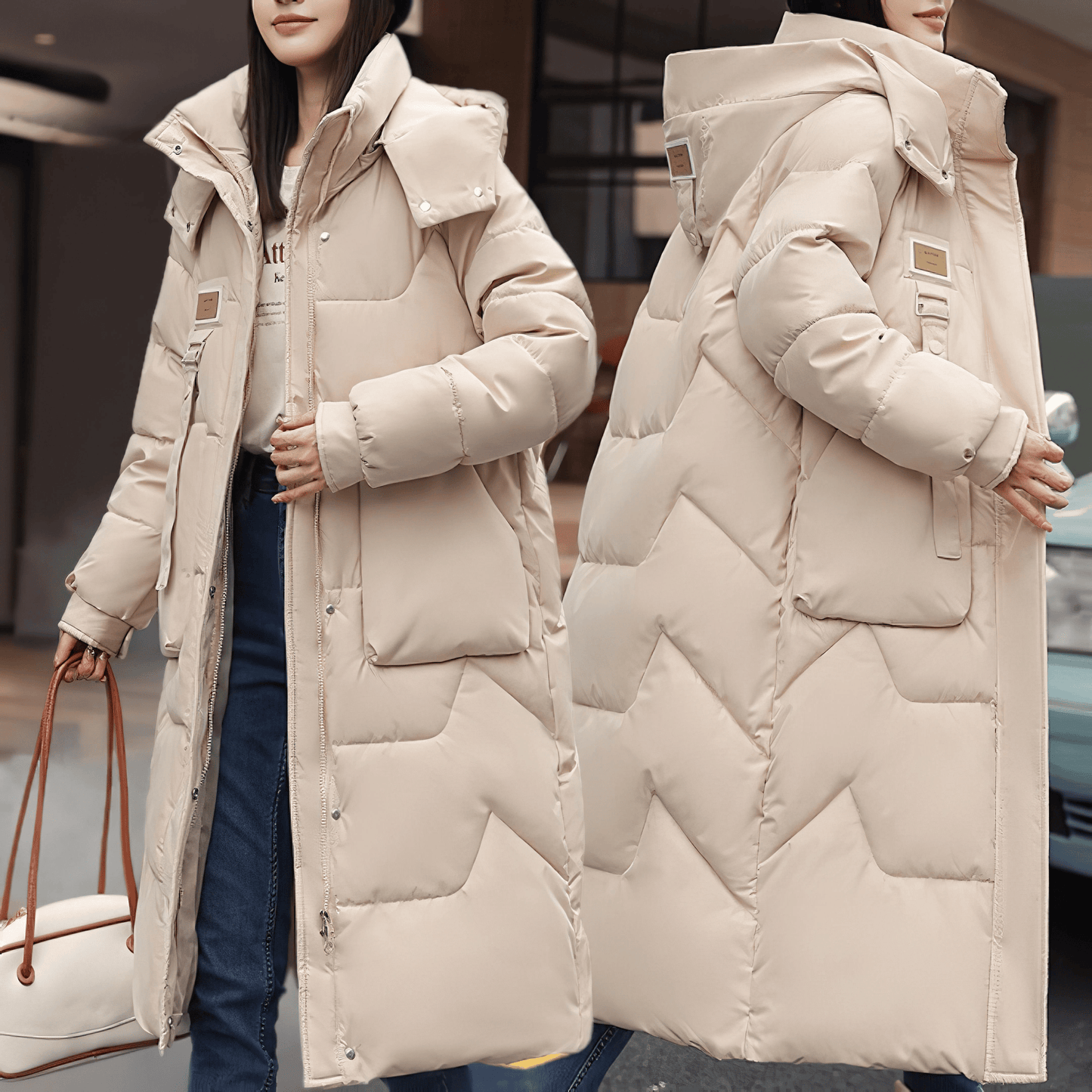 冬の寒さをしっかりガードする、シンプルで上品なロングダウンコート