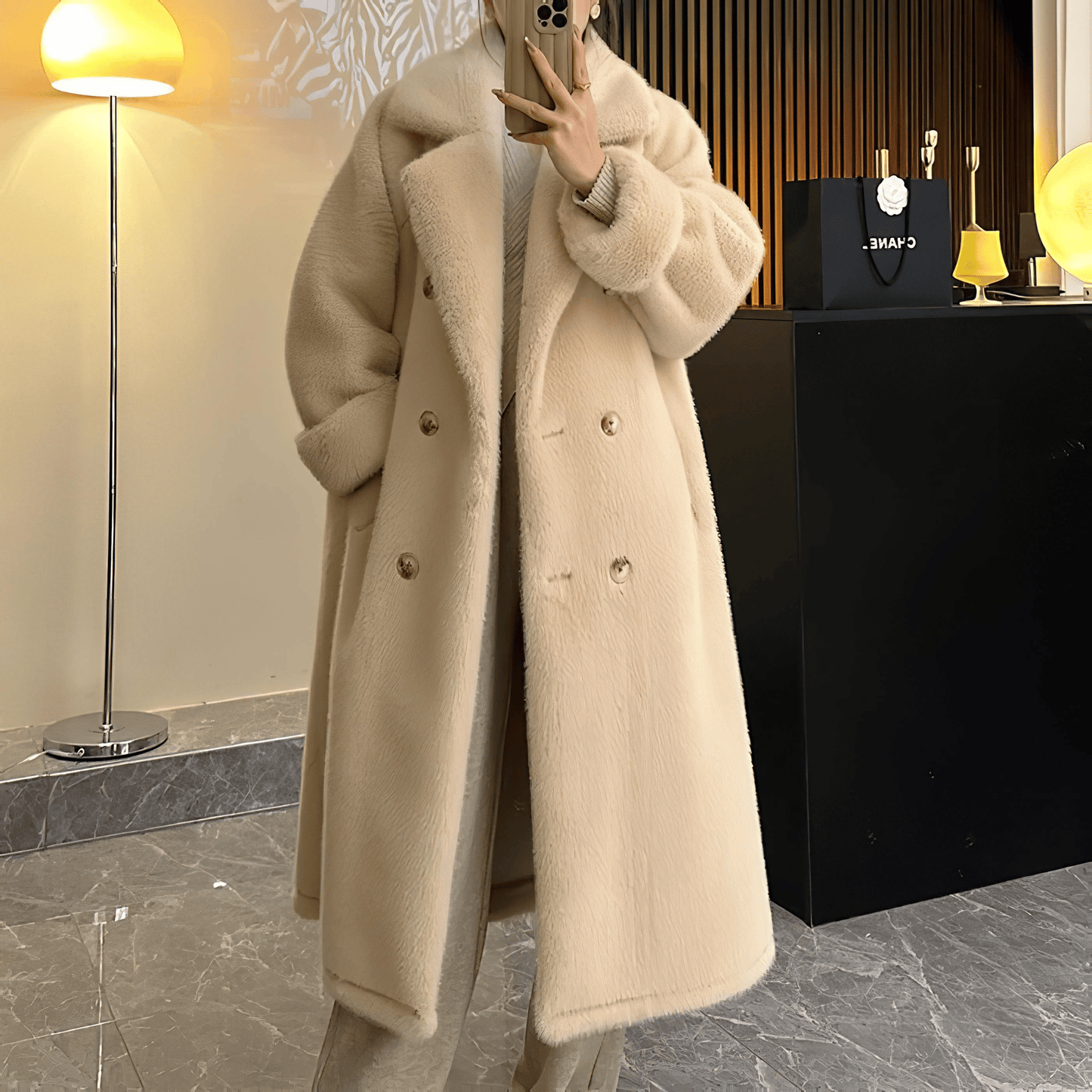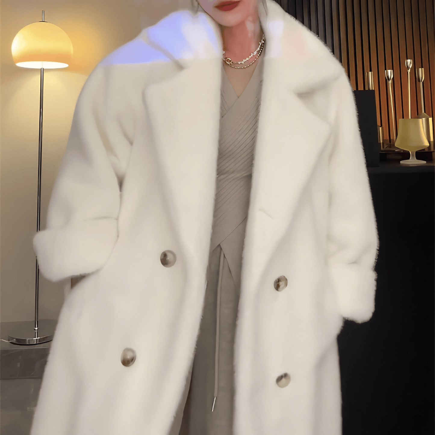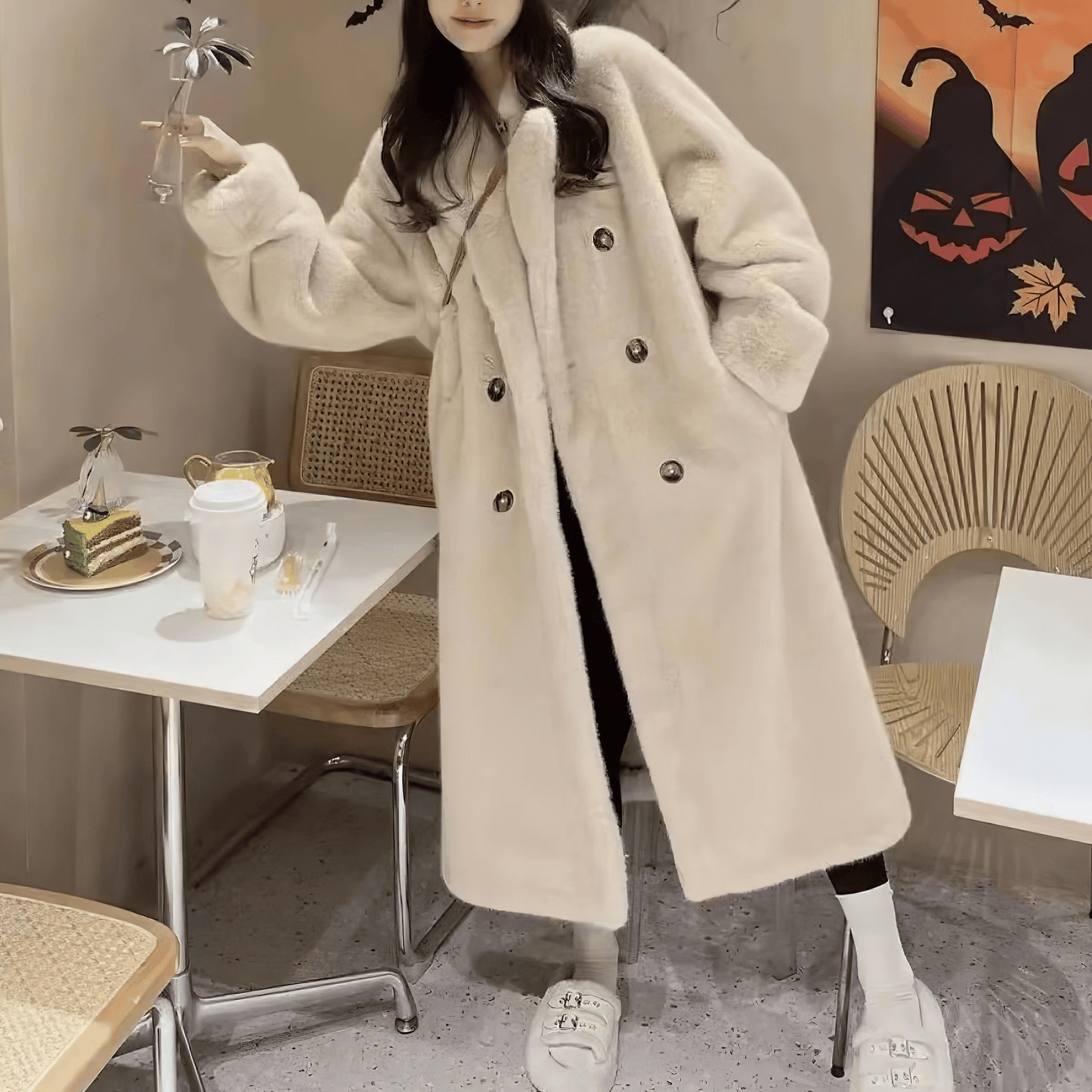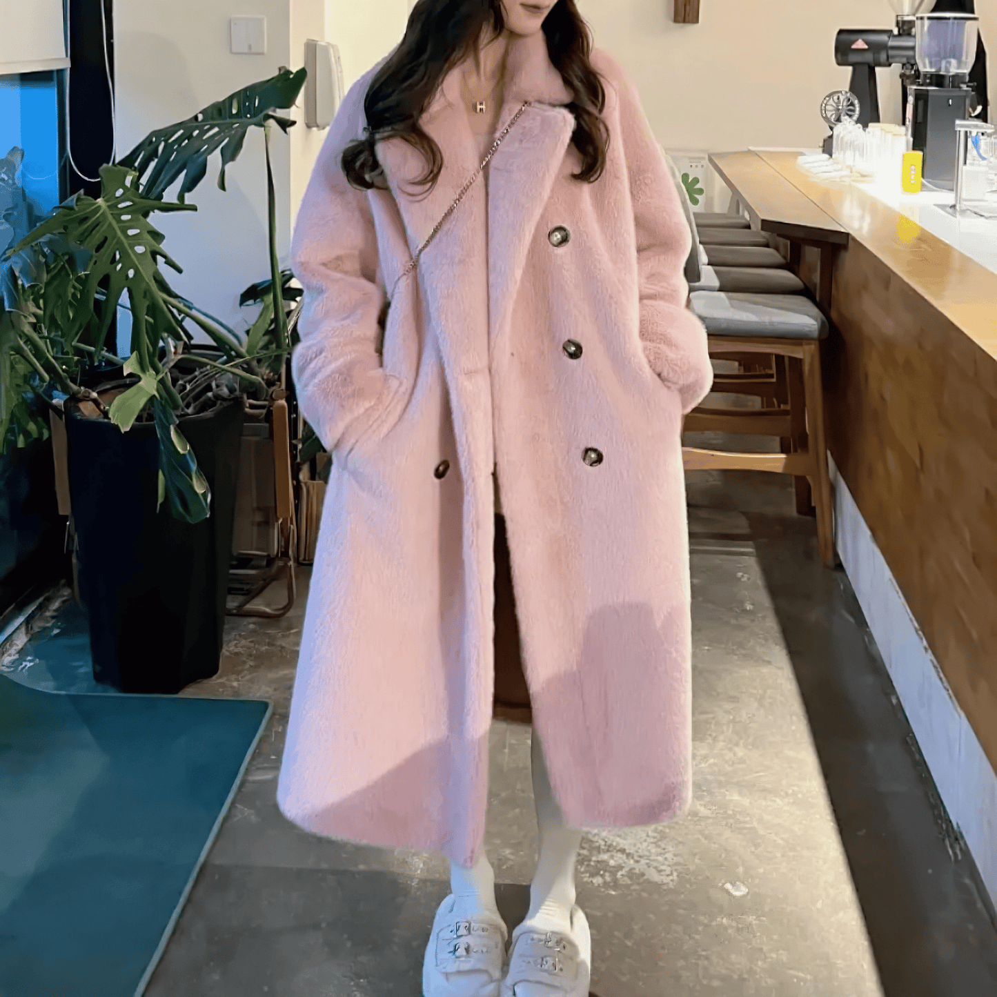 柔らかさと上質感が、洗練された印象を引き立てます。やさしいカラーが落ち着きと華やかさを演出し、さまざまなコーディネートに調和します。 クラシックな襟とダブルボタンデザインが、エレガントさを一層高め、フォーマルにもカジュアルにも対応可能。寒い日でもスタイリッシュに過ごせる、暖かさとデザイン性を兼ね備えた一着です。
