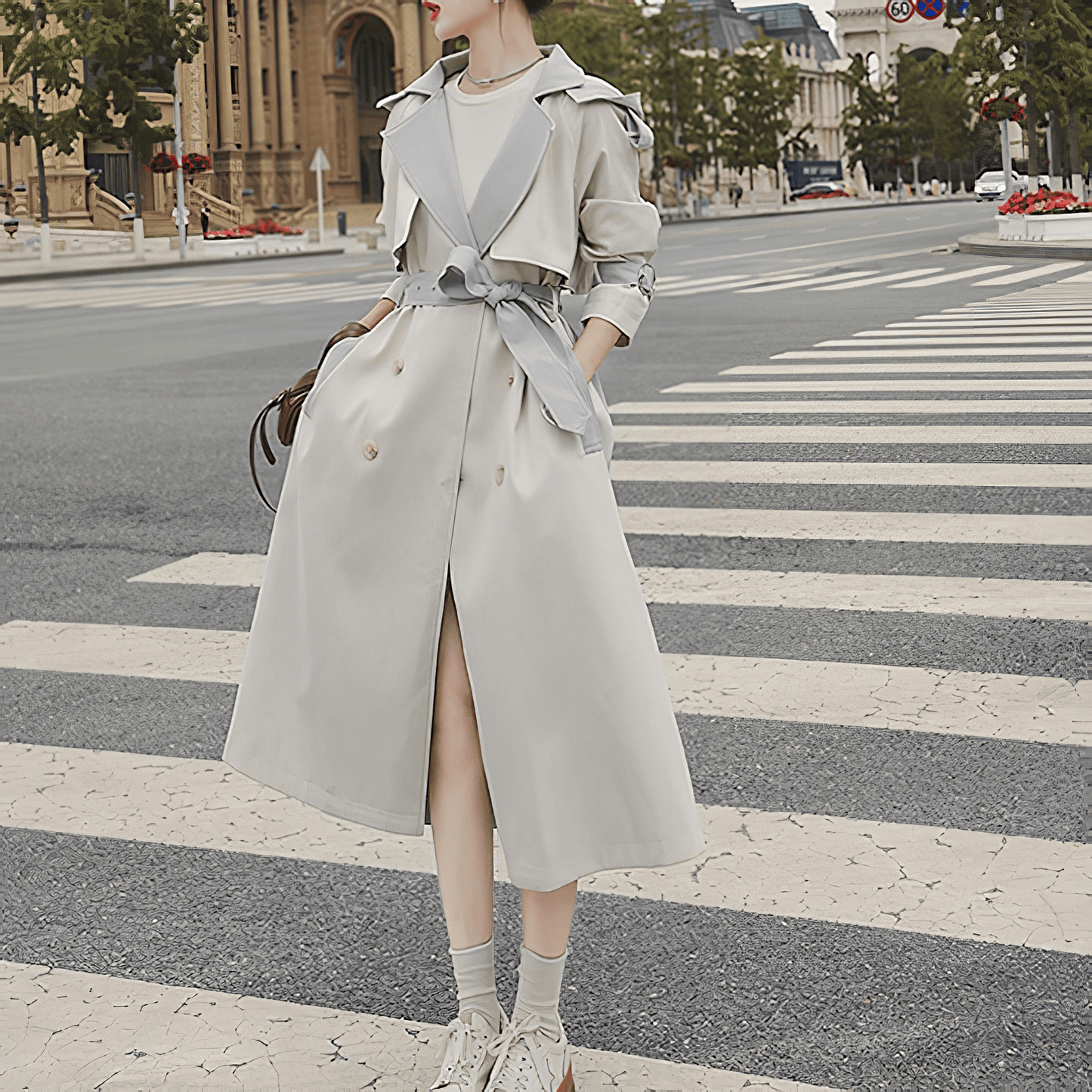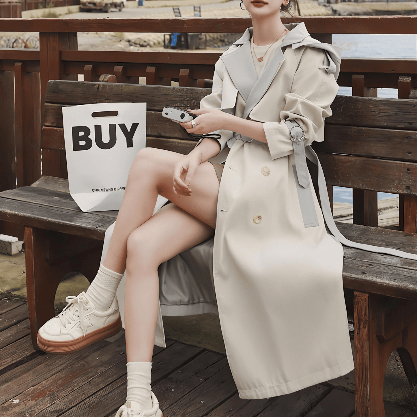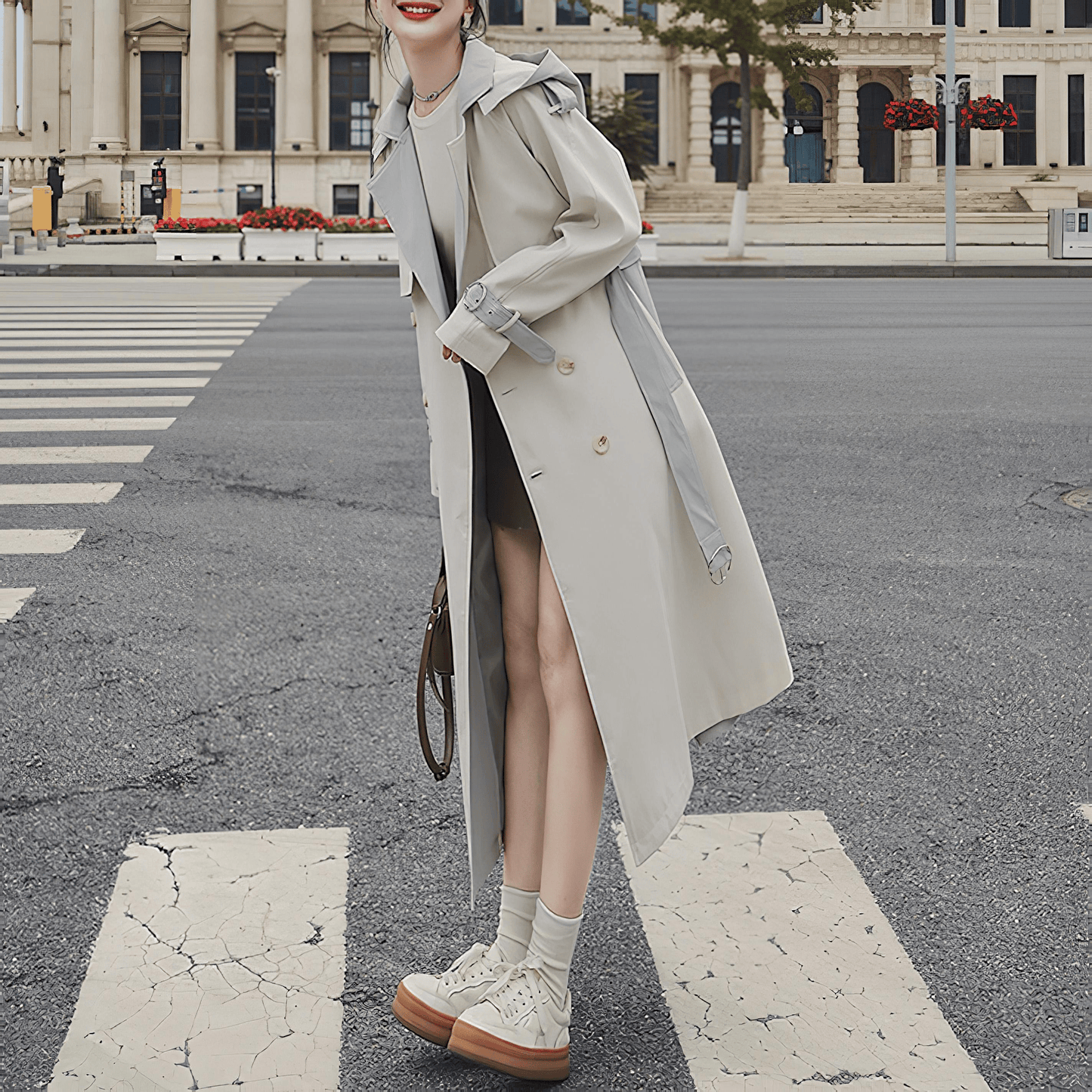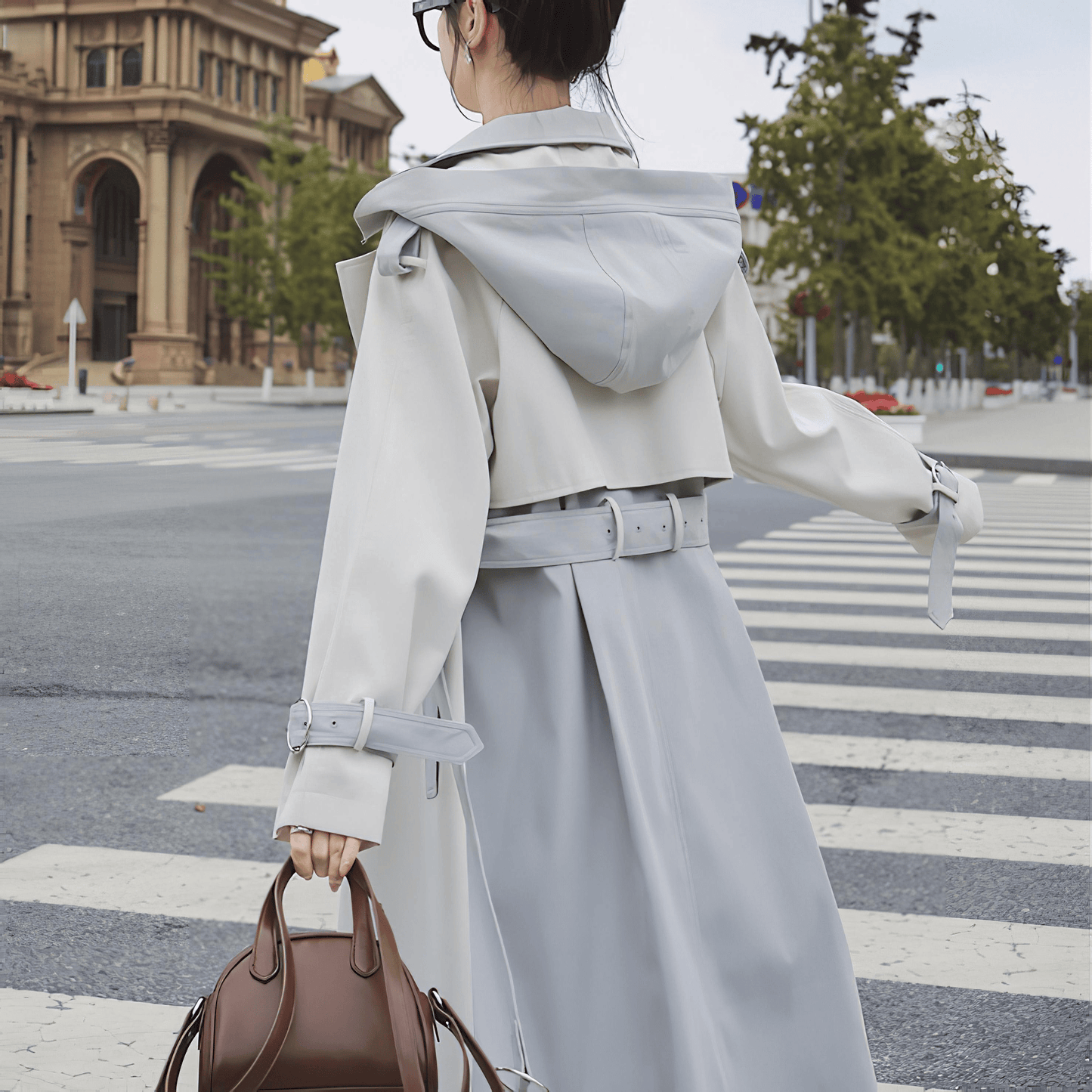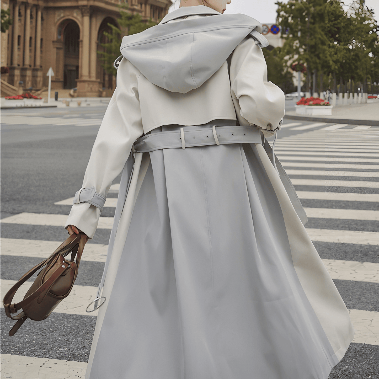 シンプルでエレガントなフード付きトレンチコート